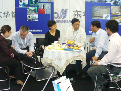 本屆展會(huì)上,我公司的展臺(tái)占地200余平方米,設(shè)計(jì)美觀大方。展臺(tái)內(nèi)樣品、資料豐富齊全,整個(gè)展臺(tái)突出體現(xiàn)了“DONGHUA”自主品牌。同時(shí),展臺(tái)占盡地理優(yōu)勢(shì),設(shè)在E1館,進(jìn)展館第一個(gè)展廳即能看到我公司展臺(tái)。