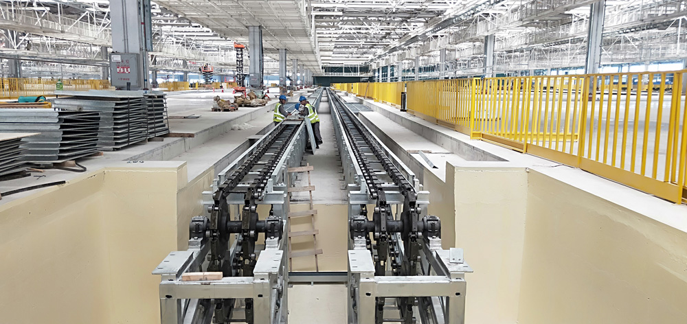 汽車制造行業用鏈條主要是指汽車制造生產線上使用的鏈條,在汽車整車制造的沖壓、焊接、涂裝、總裝等汽車生產環節,用于模具、車身零部件及整車等各類物料的傳輸搬運。