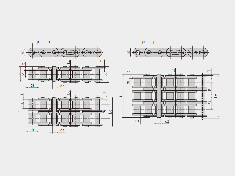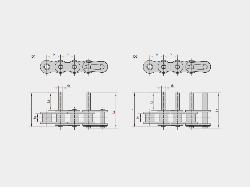 ● 輸送用滾子鏈的基鏈尺寸符合ISO、ASME/ANSI、DIN、JIS等標準的規定,主要有A系列直邊鏈板滾子鏈、B系列直邊鏈板滾子鏈、短節距帶附件輸送鏈、雙節距輸送鏈、雙節距帶附件輸送鏈等;