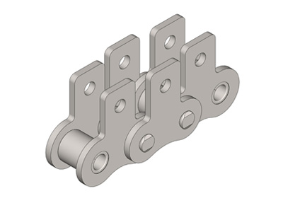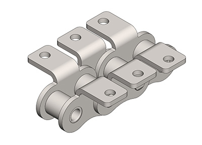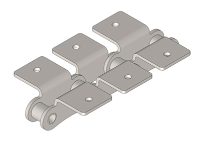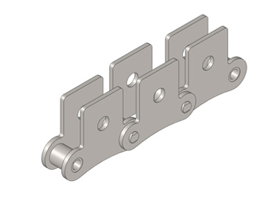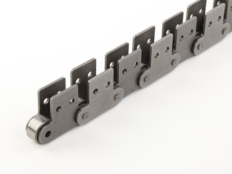 ● 輸送用滾子鏈的附件根據使用要求設計不同的結構形式,具有廣泛性、多樣性等特點,其中水平壓彎附板、帶孔直立附板、加長銷軸等附件應用較為廣泛。